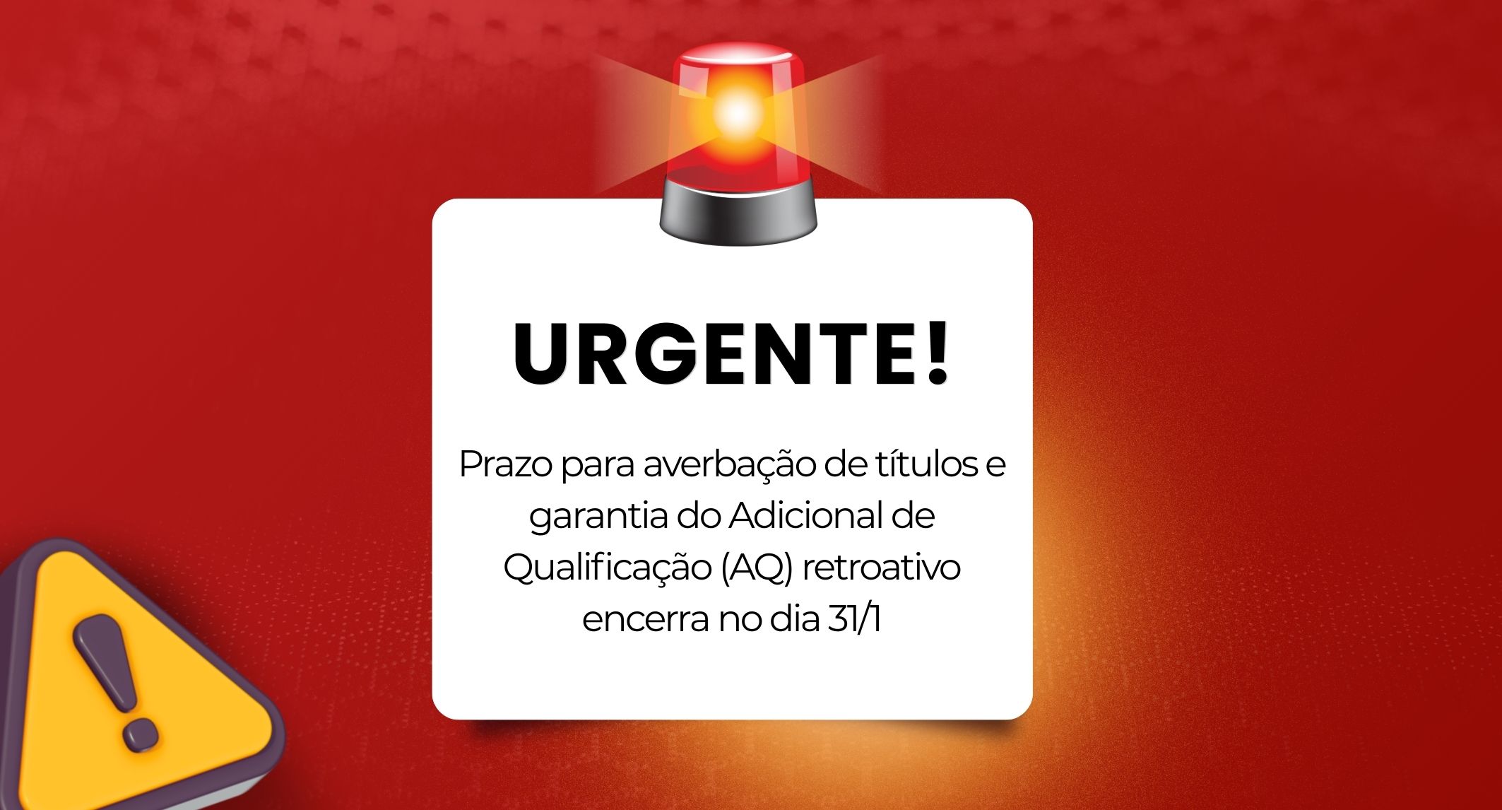 URGENTE: Prazo para averbação de títulos e garantia do Adicional de Qualificação (AQ) retroativo encerra no dia 31/1